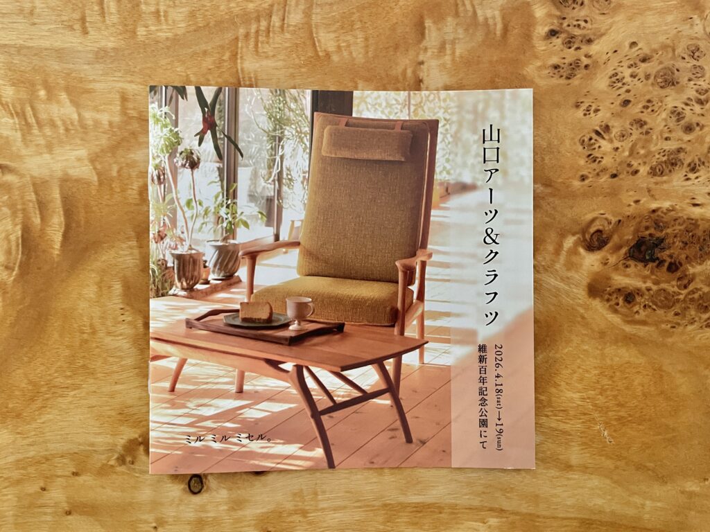 18日19日は毎年恒例の山口アーツ&クラフツです。今回は表紙にソファーとローテーブルを使って頂いています🛋️場所はいつもと同じBブロックのはじっこ🌲今年は木担当のみの参加となりますが、維新公園でお待ちしております✨