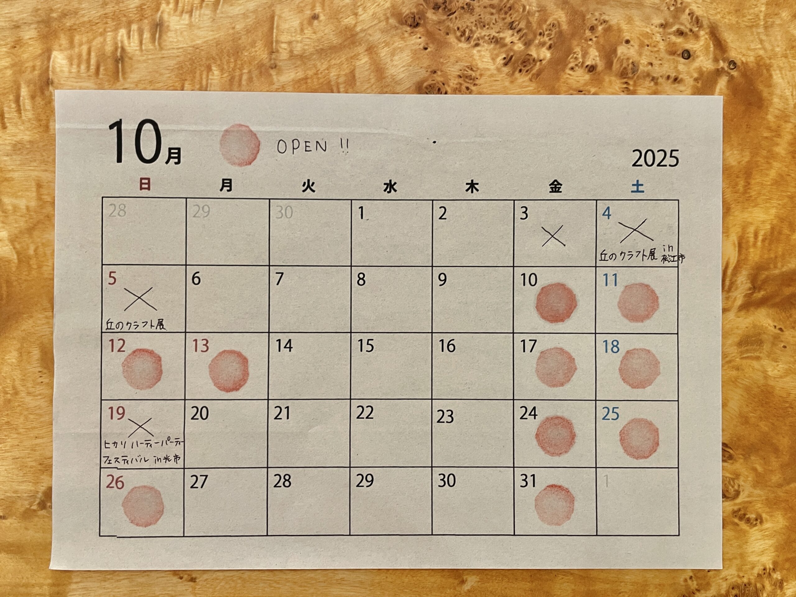 10月の営業日